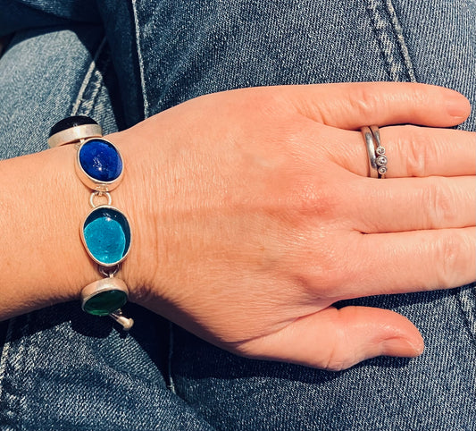 Absolutely stunning vintage sterling silver and glass Mexican bracelet.