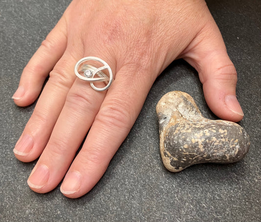 Absolutely stunning vintage sterling silver ring with a cut quartz crystal stone.