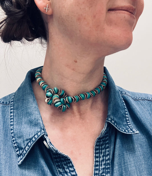 Absolutely stunning artisan made sterling silver and turquoise bead necklace.