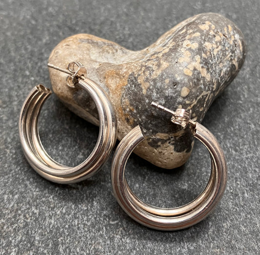Vintage sterling silver triple tube hoops.