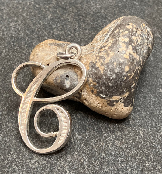 Sold outVintage sterling silver ‘e’ pendant.