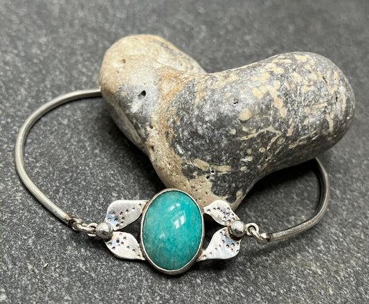 Vintage sterling silver artisan bracelet with green amazonite stone. 1982