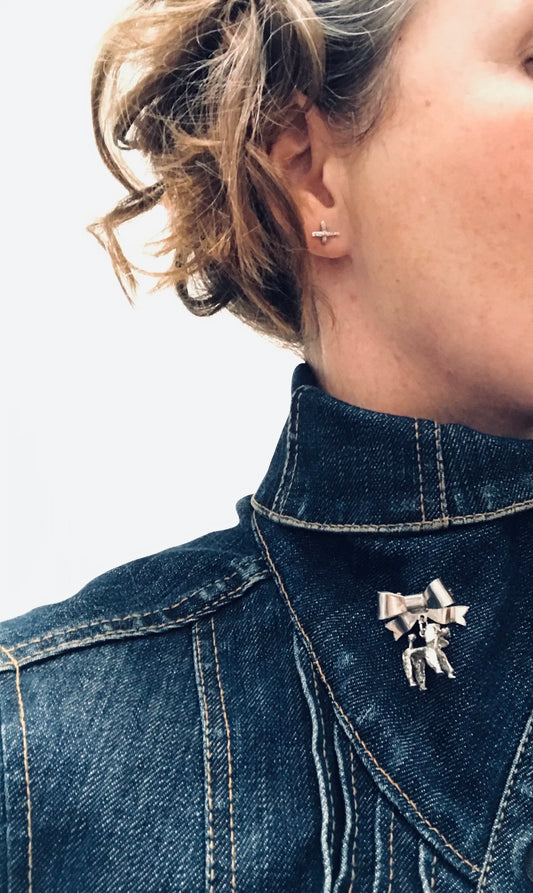 Vintage sterling silver bow brooch with poodle! 1966-67