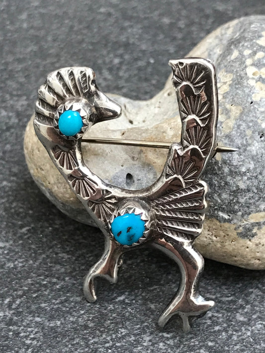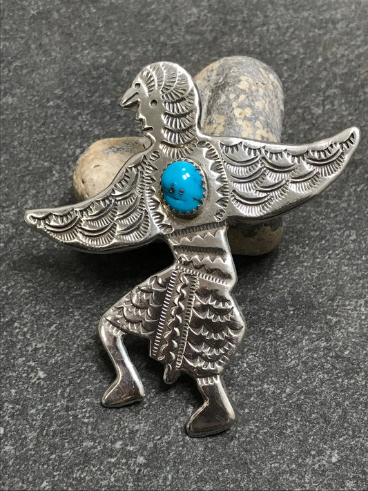 Statement vintage sterling silver Zuni tribal dancer. ‘Free as a bird’