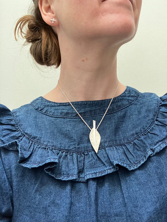 Beautiful vintage handmade sterling silver leaf brooch. 1966-67