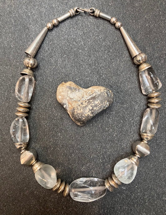 Spectacular statement Tibetan vintage sterling silver and natural rock crystal necklace.