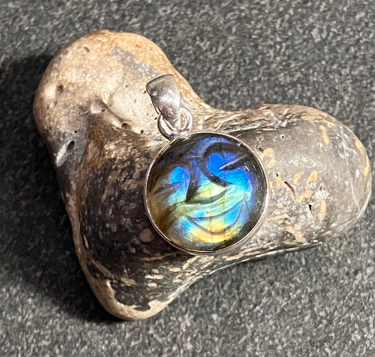 Vintage sterling silver and labradorite smiley moon 🌚 pendant.
