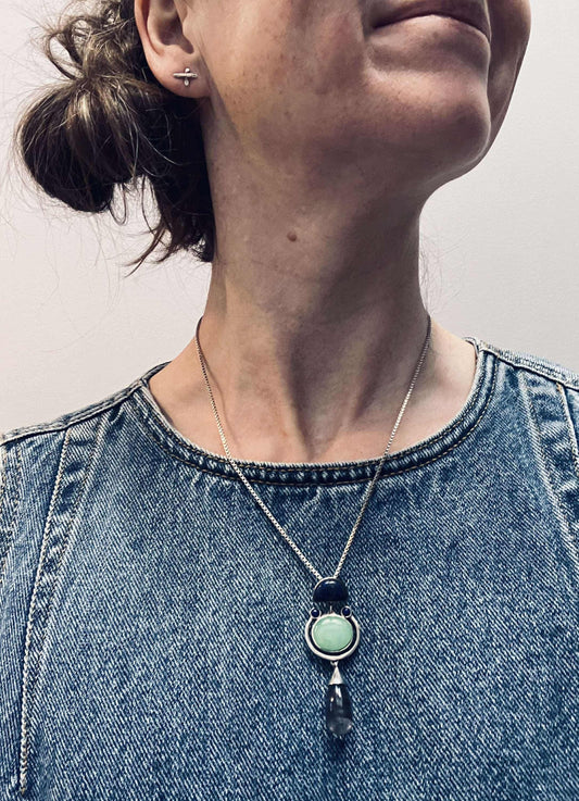 Vintage sterling silver pendant. Comprising of Lapis Lazuli, chrysoprase and fluorite.