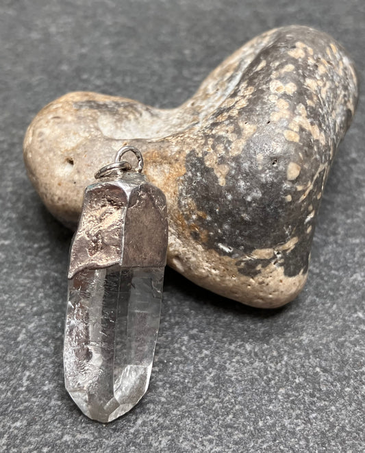 Vintage sterling silver natural raw rock cut crystal pendant.