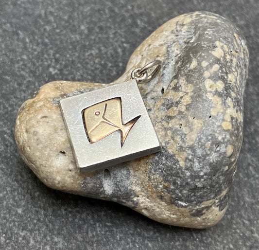 Wonderful vintage 1960's solid sterling silver and 14ct Gold pendant by the Finnish silversmith Elis Kauppi for Kupittaan Kultaz.