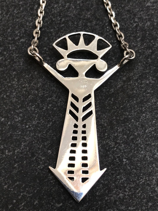 A striking vintage Mexican warrior face pendant crafted in sterling silver.