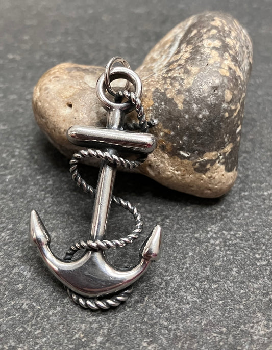 Really lovely vintage sterling silver detailed anchor and rope pendant.