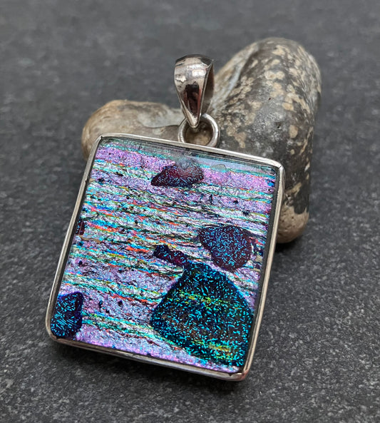 Sold outLarge Dichroic glass pendant.