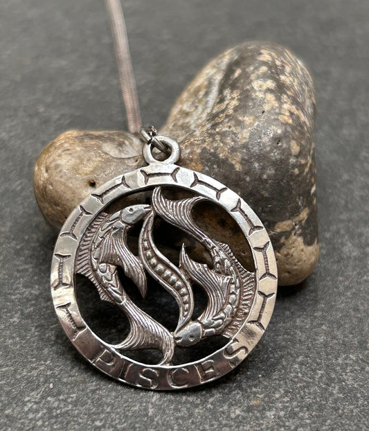 Vintage sterling silver Pisces pendant 1977 with Sterling vintage chain.