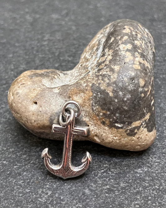 Vintage sterling silver etched anchor pendant.