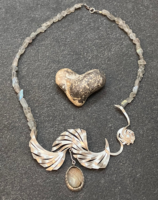 One off vintage ‘artisan made’ sterling silver and labradorite necklace