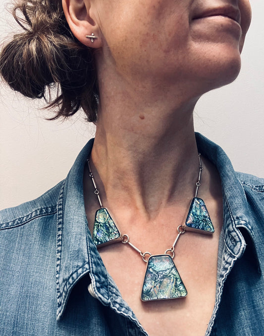 Truly spectacular vintage sterling silver and dichroic glass necklace.