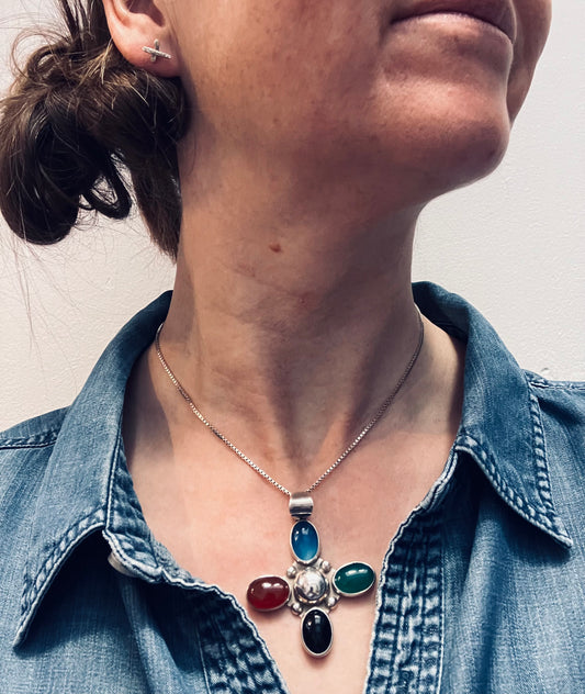 Statement vintage sterling silver Mexican cross.