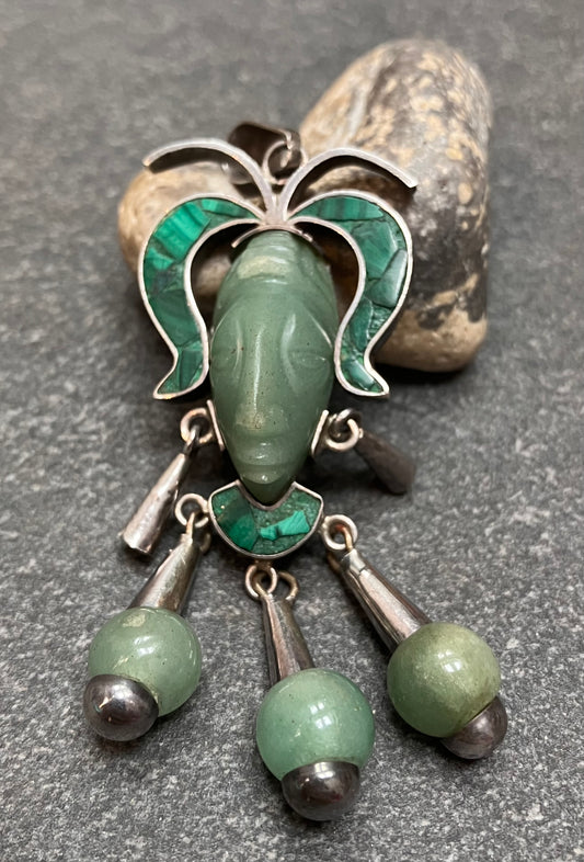 Vintage sterling silver Mexican warrior pendant .
