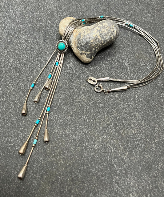 Native American liquid silver and turquoise necklace.