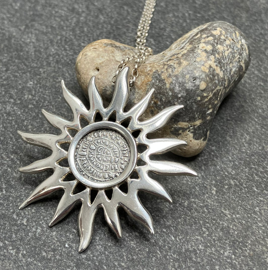 Statement vintage sterling silver and sponge coral artisan pendant with original vintage chain.