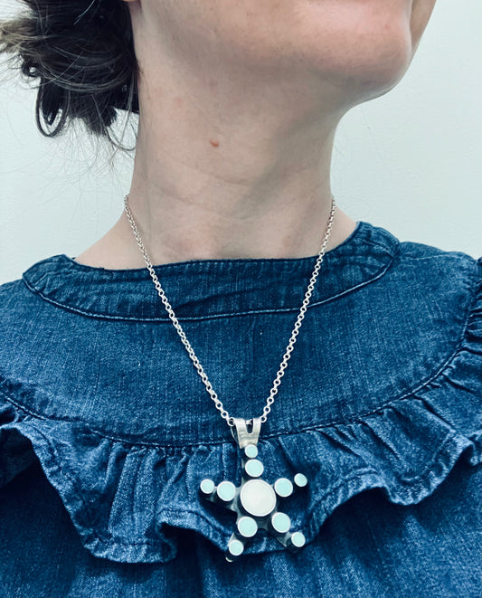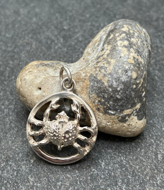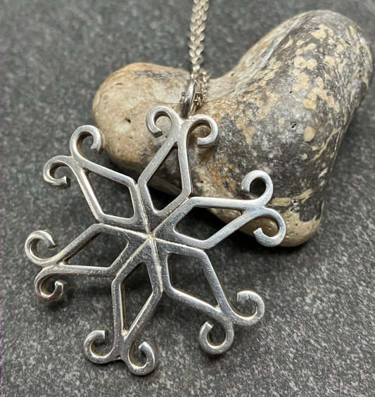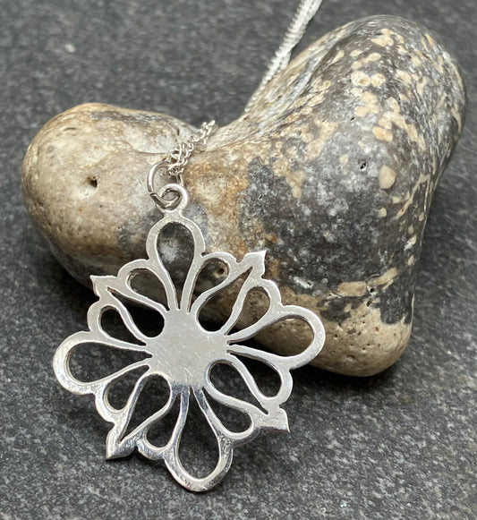 Vintage sterling silver circular pendant with lovely design embossed into the silver