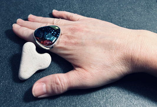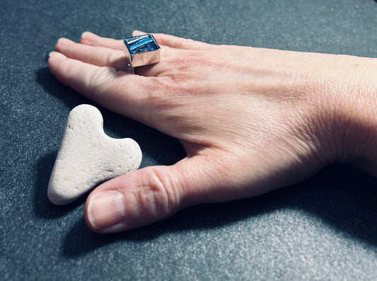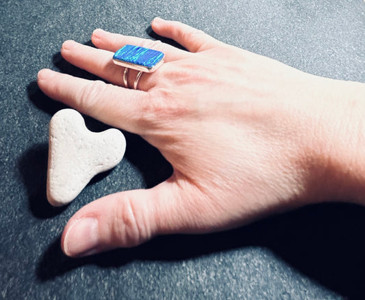 Dichroic Glass Statement Ring – Aqua Ocean Light