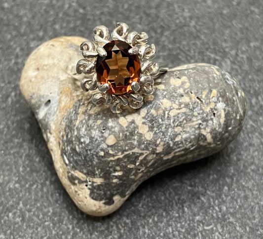 Vintage sterling silver ring set with a mandarin garnet cut stone