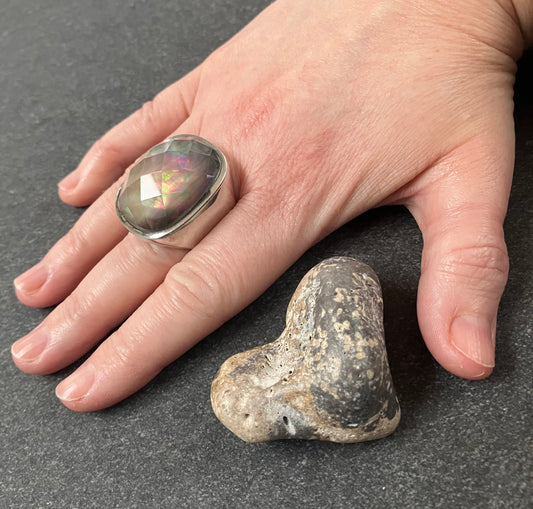 Absolutely stunning vintage sterling silver ring with a cut quartz crystal stone.