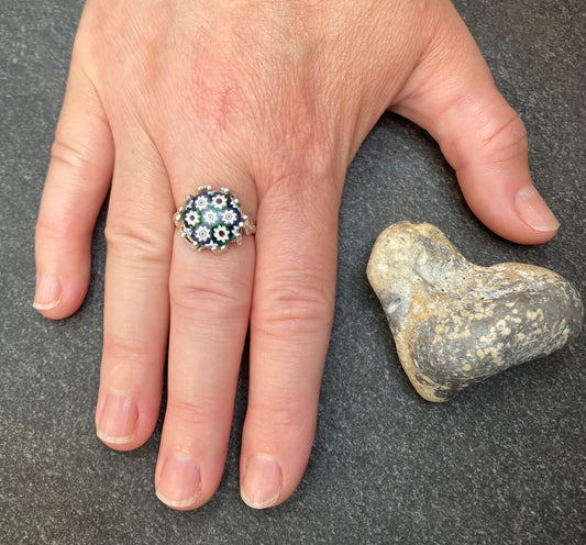 Vintage sterling silver Caithness glass ring 1971-1972