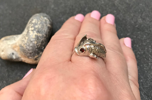 Sold outVintage sterling silver fish ring.