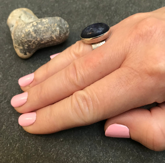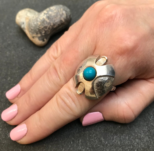 Vintage handmade artisan sterling silver and lapis lazuli ring.1972-73