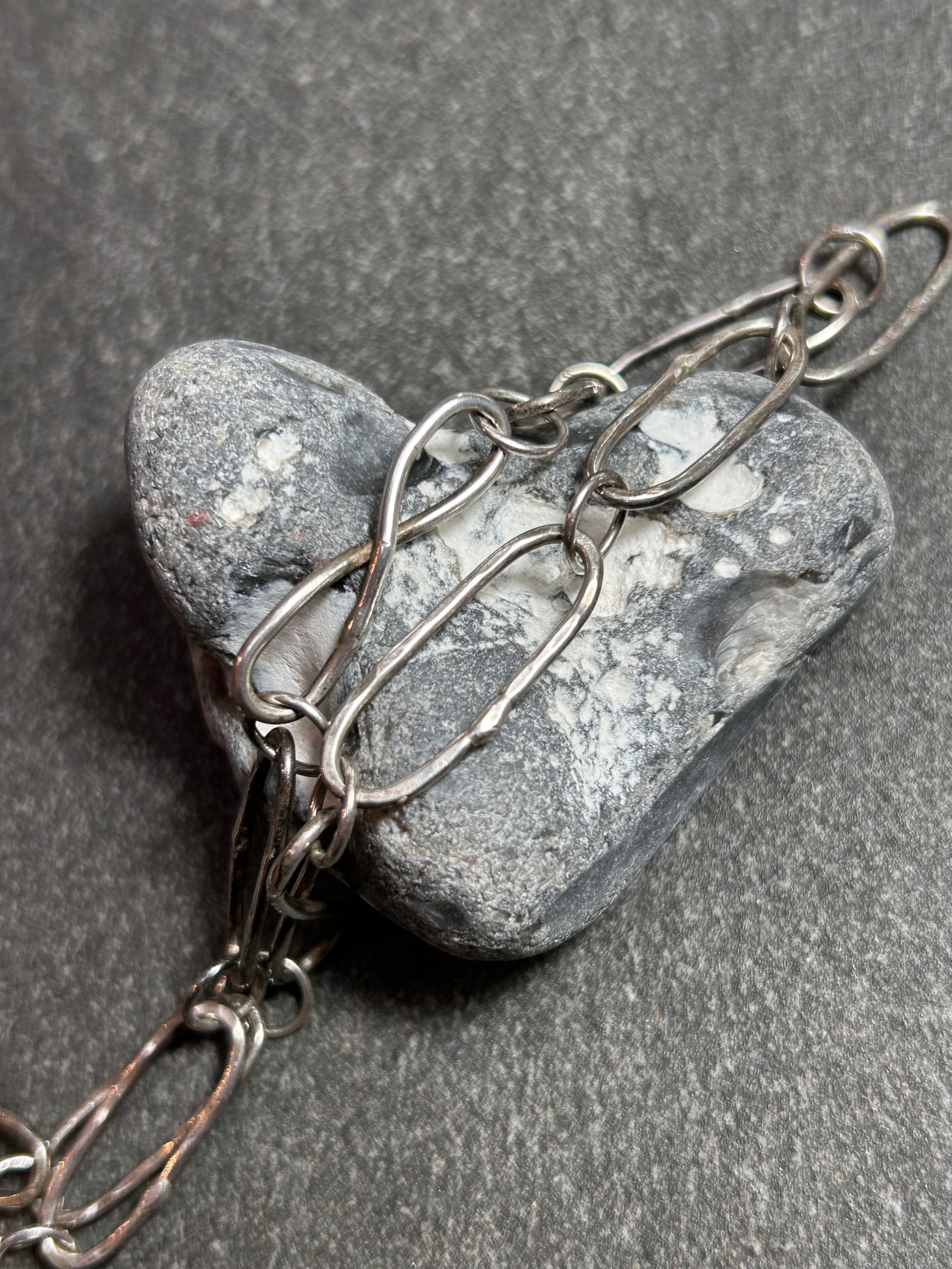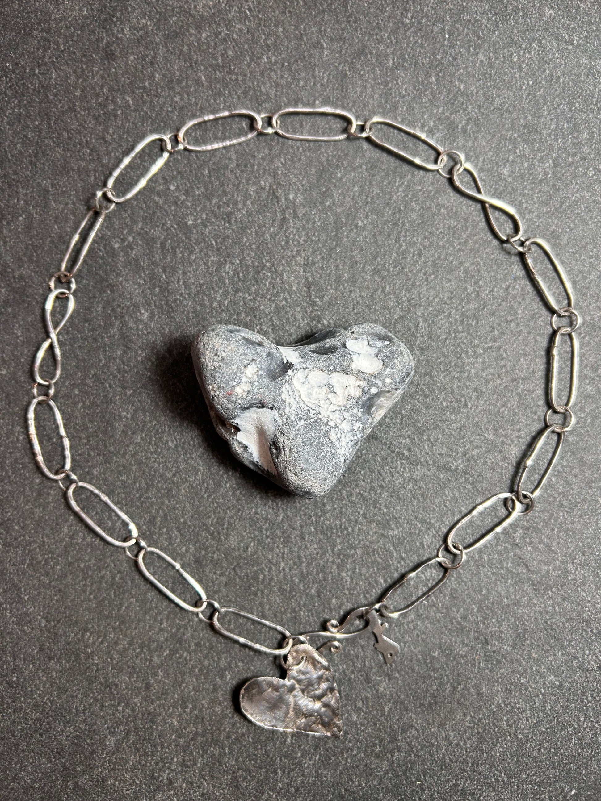 Every element of this piece has been thoughtfully created: individually formed oval links compose the chain, each one interspersed with graceful silver circles that add rhythm and movement. Beautifully interspersed are two figure-of-eight links, beautifully crafted symbols of eternity that give the necklace a quiet, poetic depth.