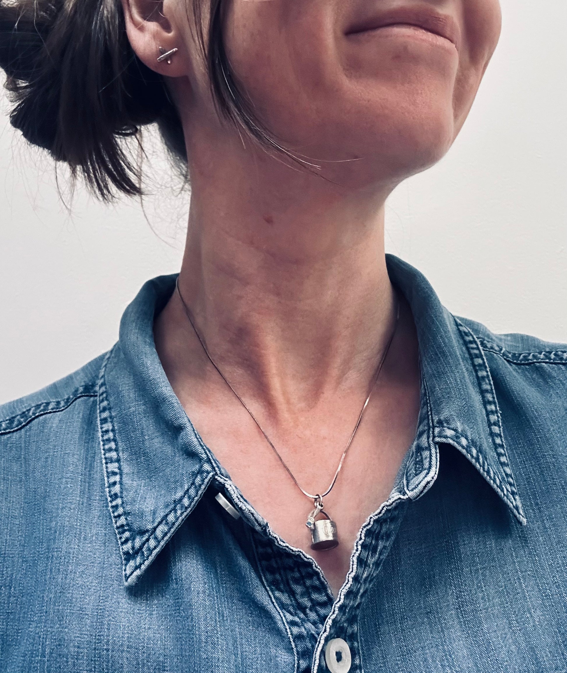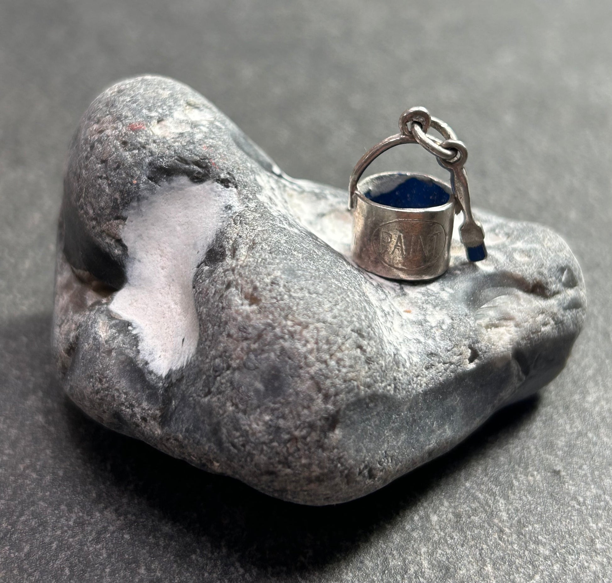Add a touch of creative flair to your jewellery collection with this delightful vintage sterling silver pendant, beautifully crafted in the shape of a painter’s paint pot and brush. A perfect piece for artists, decorators, or anyone who loves the charm of unique, art-inspired jewellery.