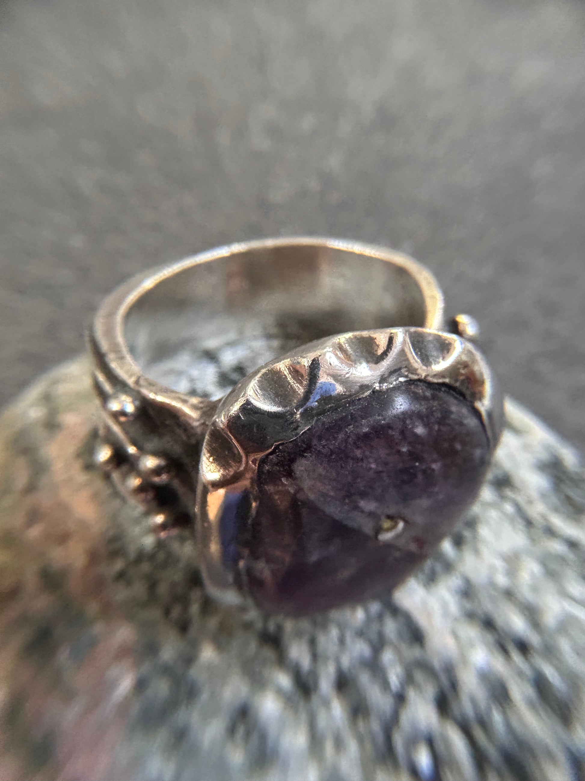 This artisan amethyst ring is a striking, one-of-a-kind.