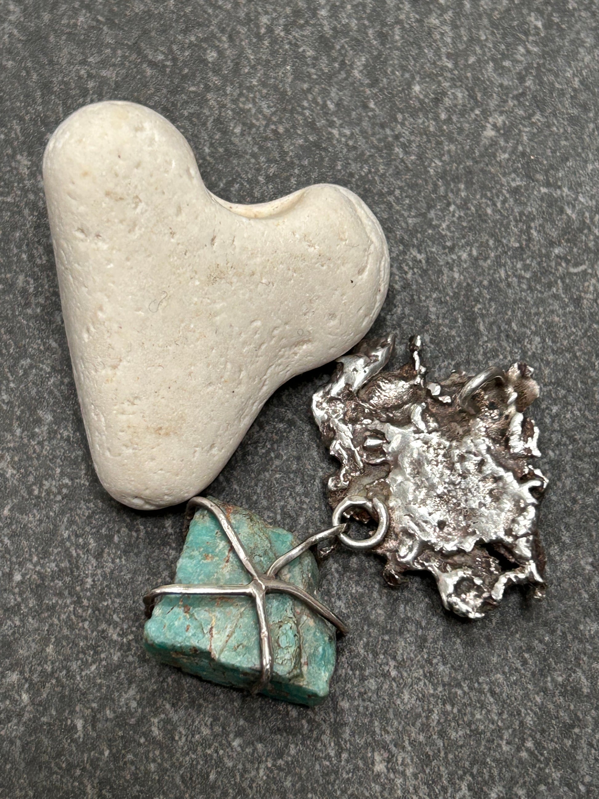Vintage Sterling Silver & Raw Amazonite Pendant (c. 1979)