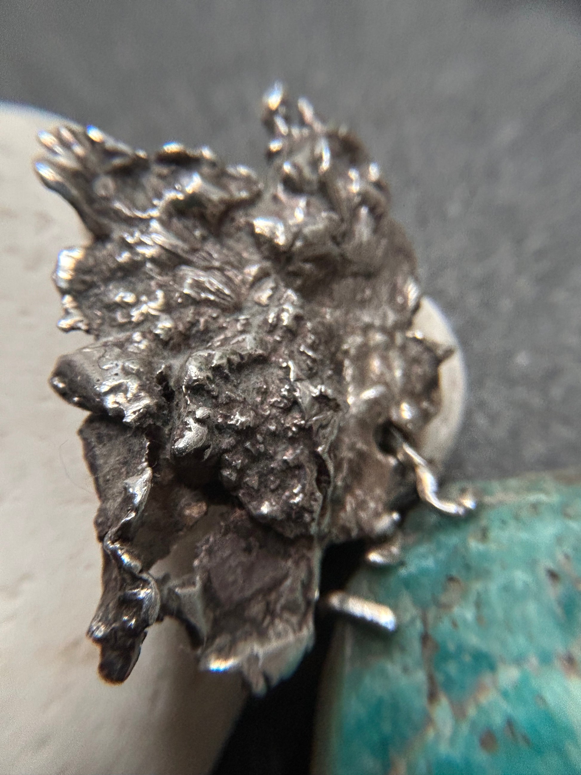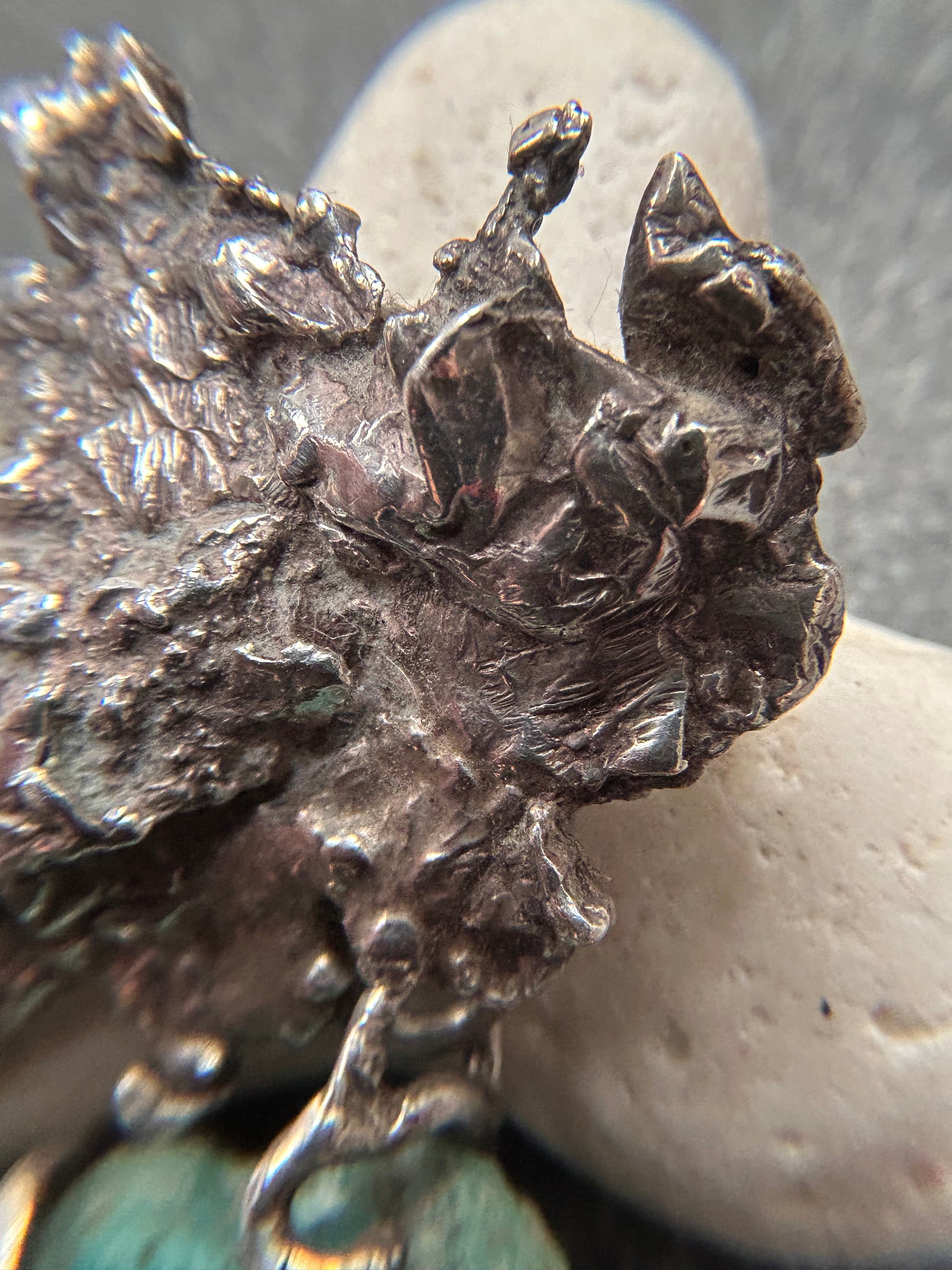 Crafted in sterling silver, the pendant has an organic, sculptural form that evokes the look of lichen on bark — great texture and undulations.